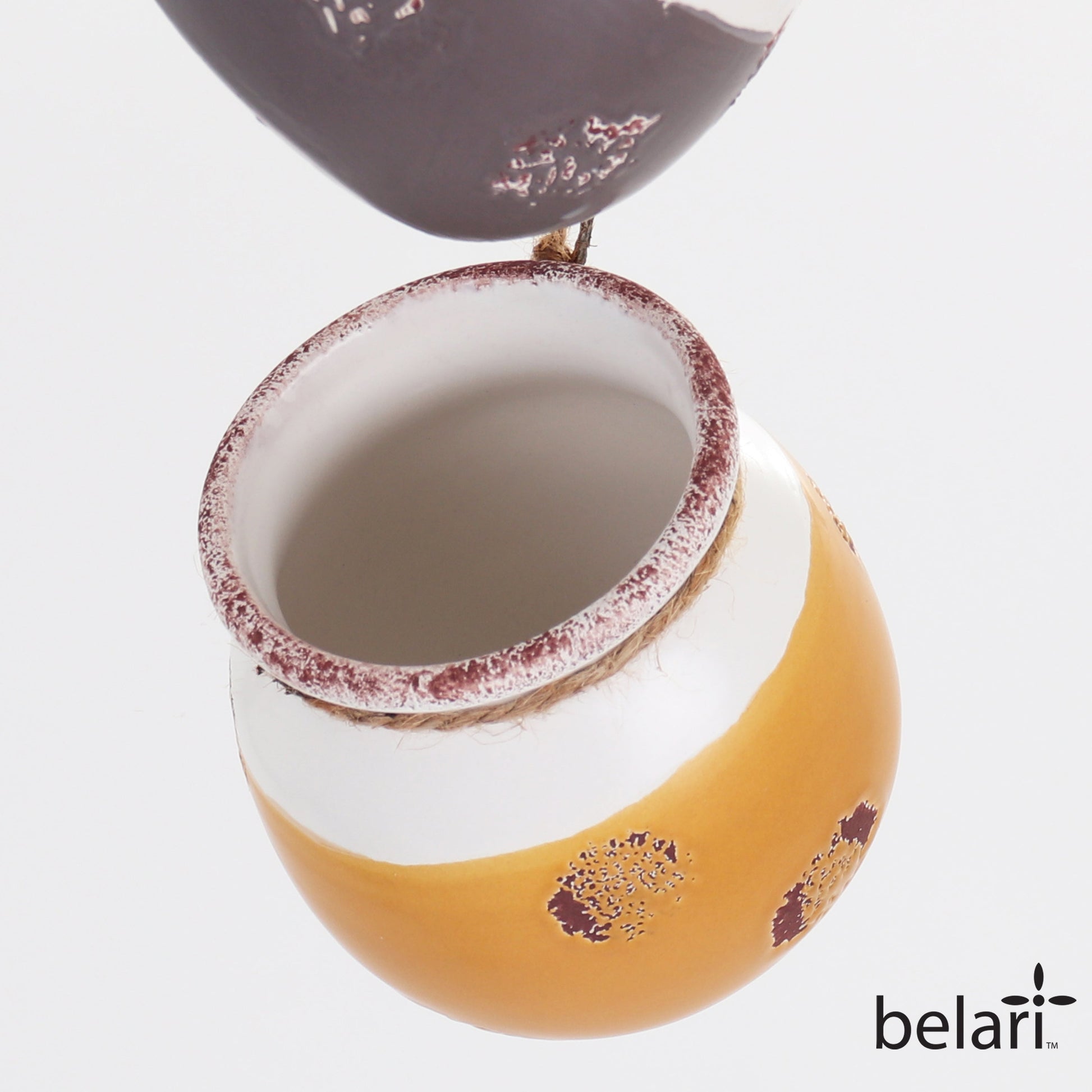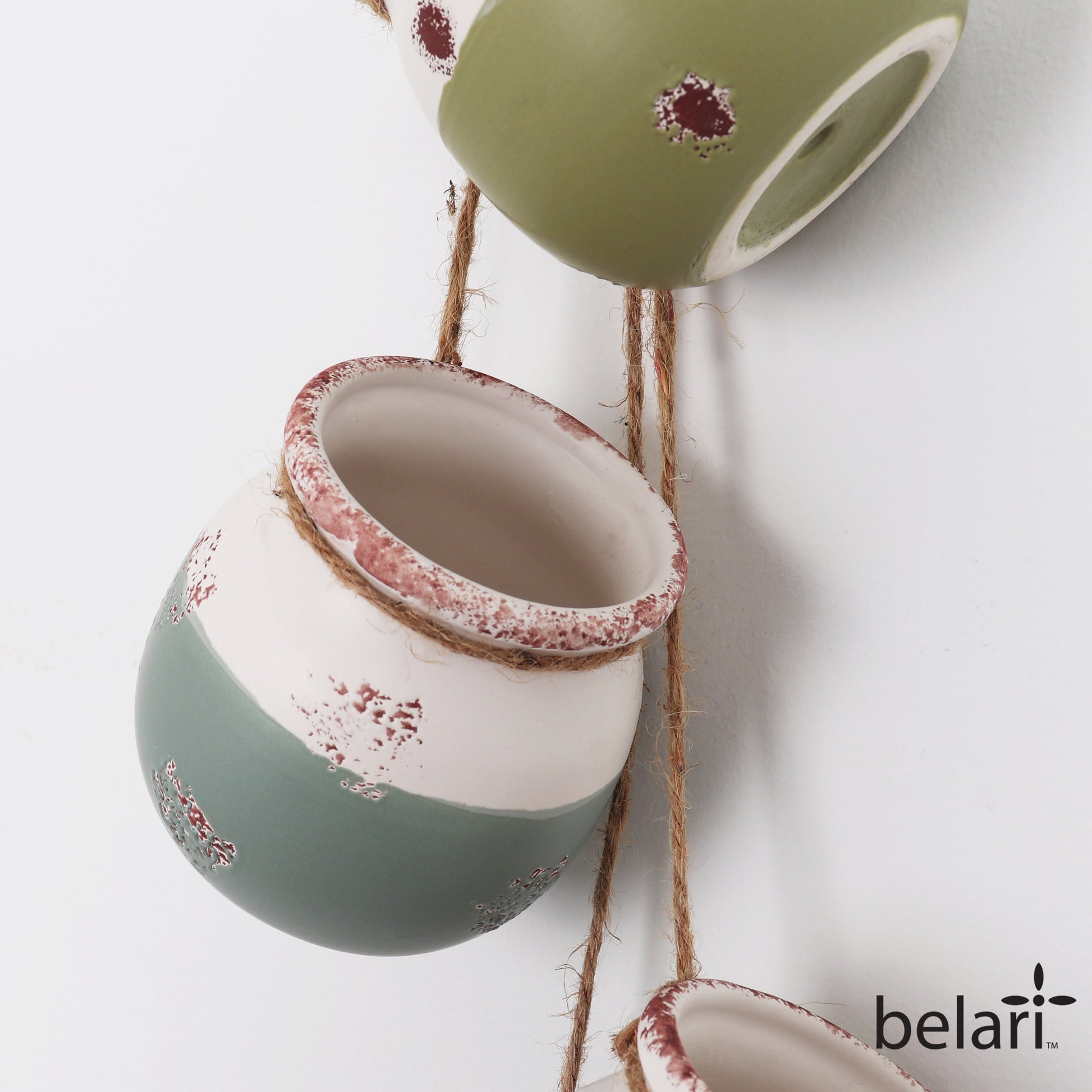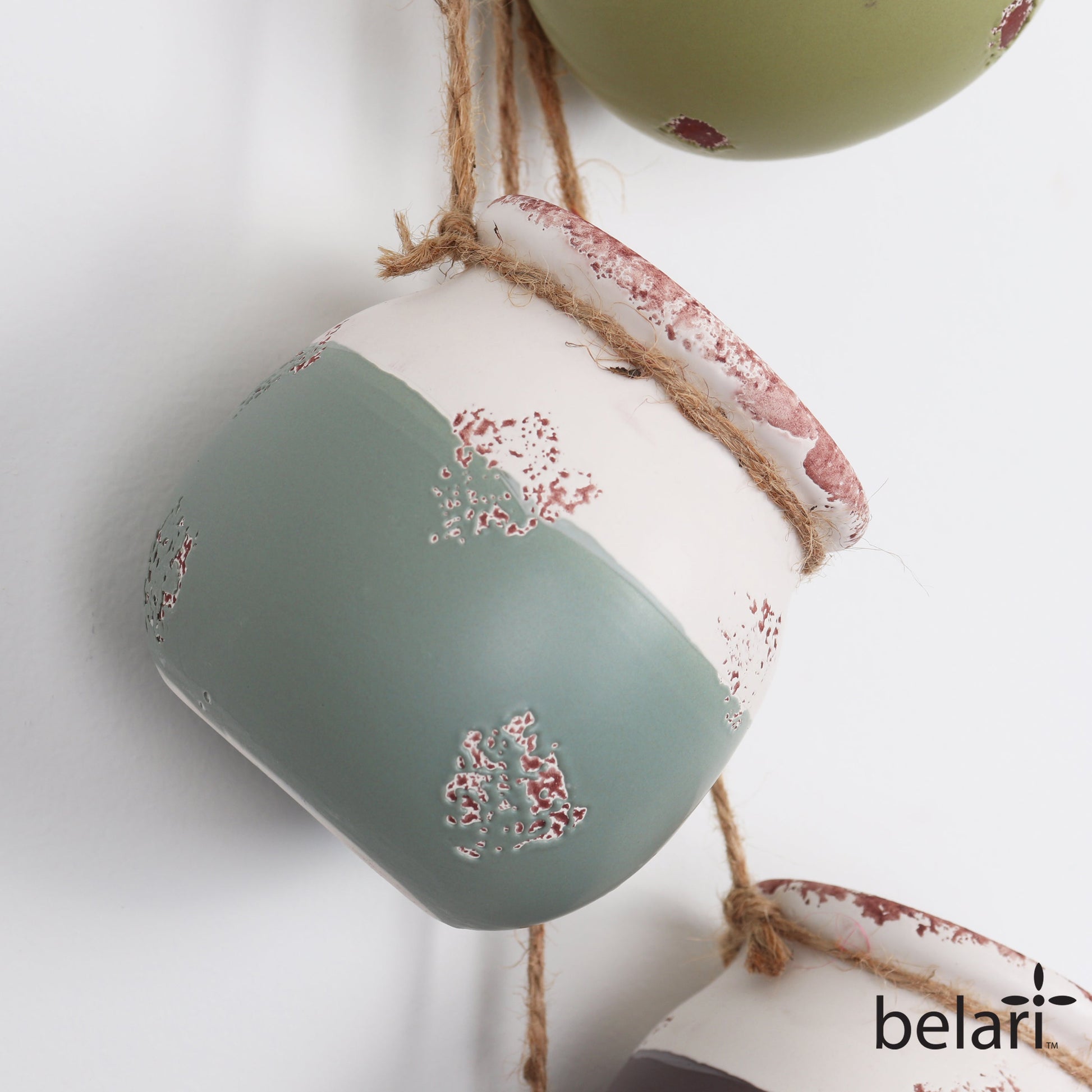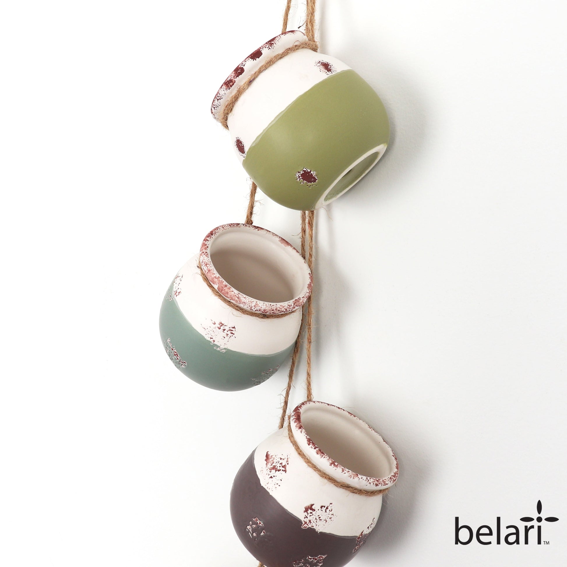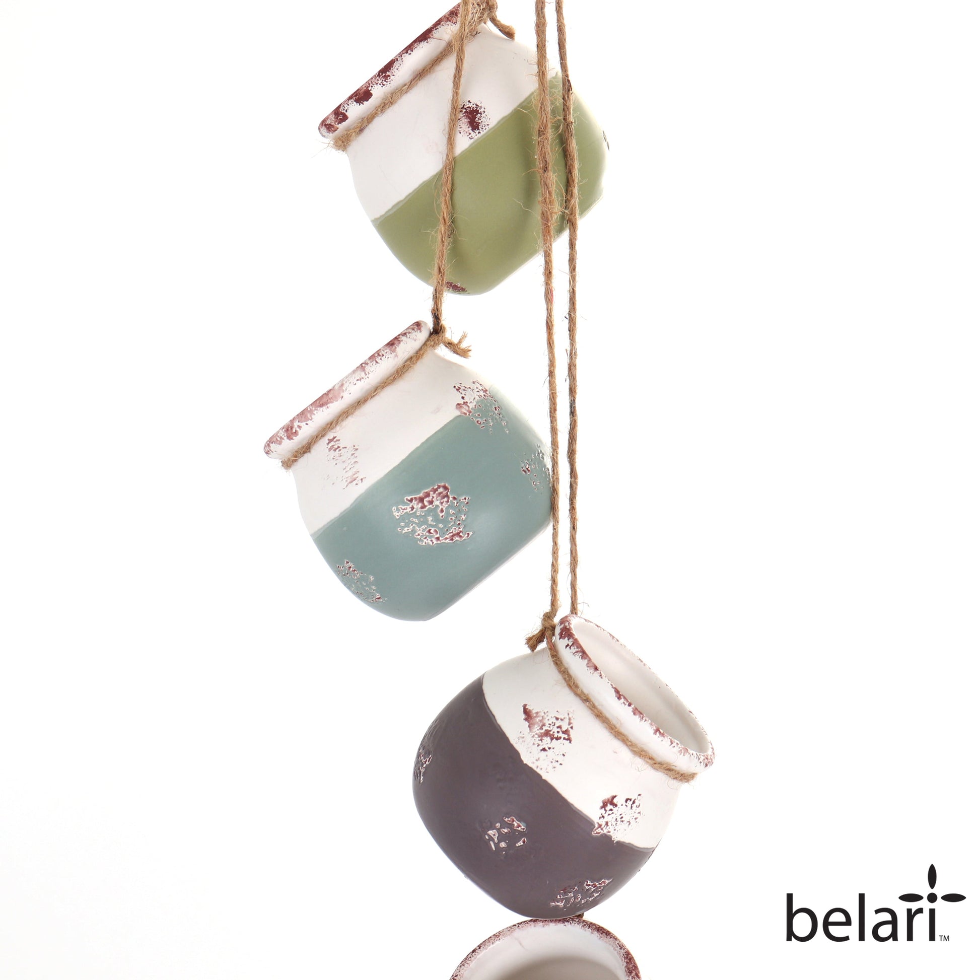- SUPERIOR QUALITY AND DESIGN - Belari ceramics are designed with meticulous detail and produced with strict quality constraints to ensure complete satisfaction with each and every piece. (DIMENSIONS: Each Pot: 3.5" Dia. x 3.75" H (Pot Opening: 2" Dia.); Hanging: 26" H)