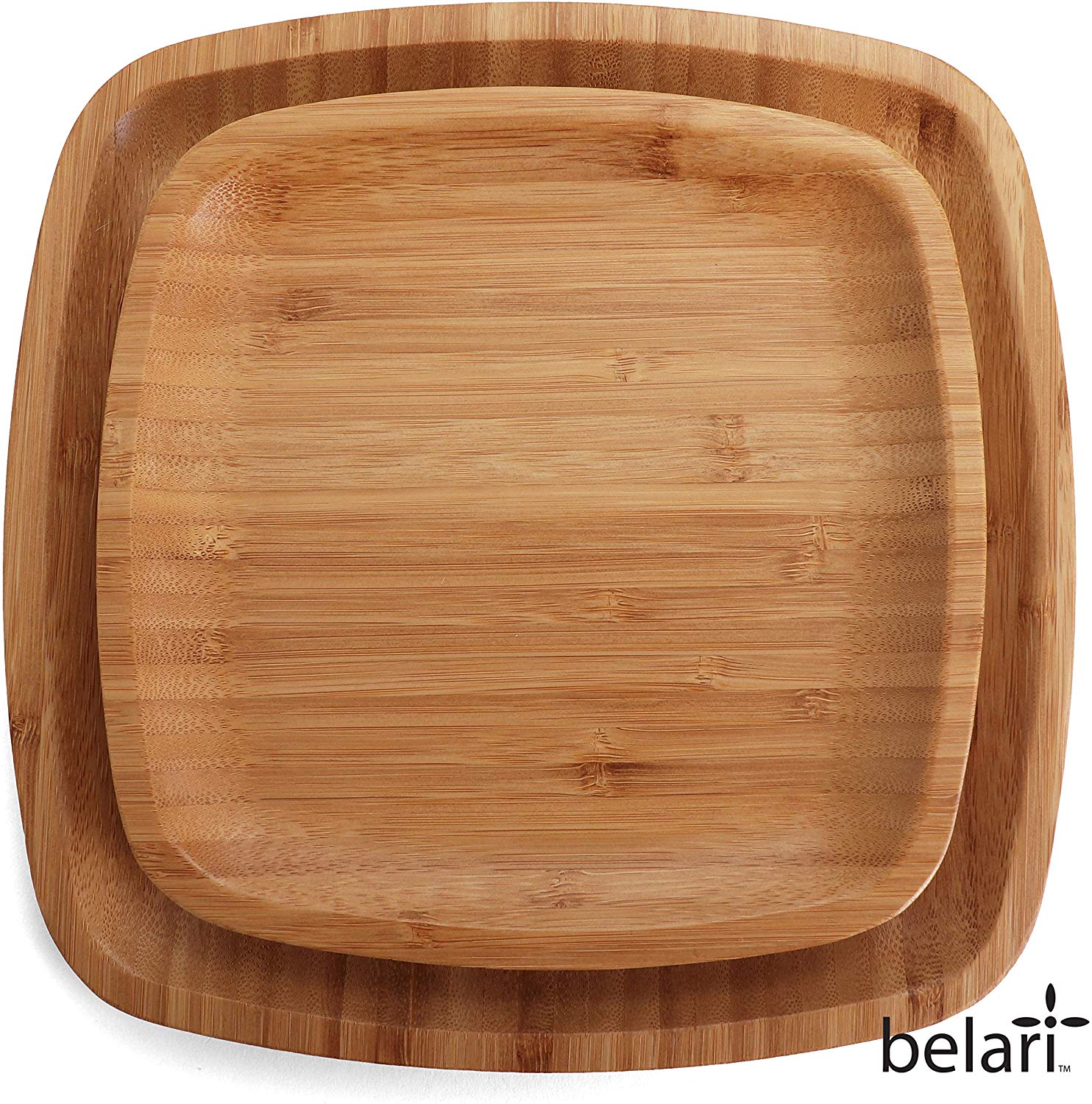 - ECO FRIENDLY PLATES - Bring a piece of nature into your kitchen with Belari square bamboo plates. Each Belari wood plate is made from durable bamboo and is perfect for casual, everyday dining. The materials for Belari eco friendly plates are sourced from sustainable bamboo forests.