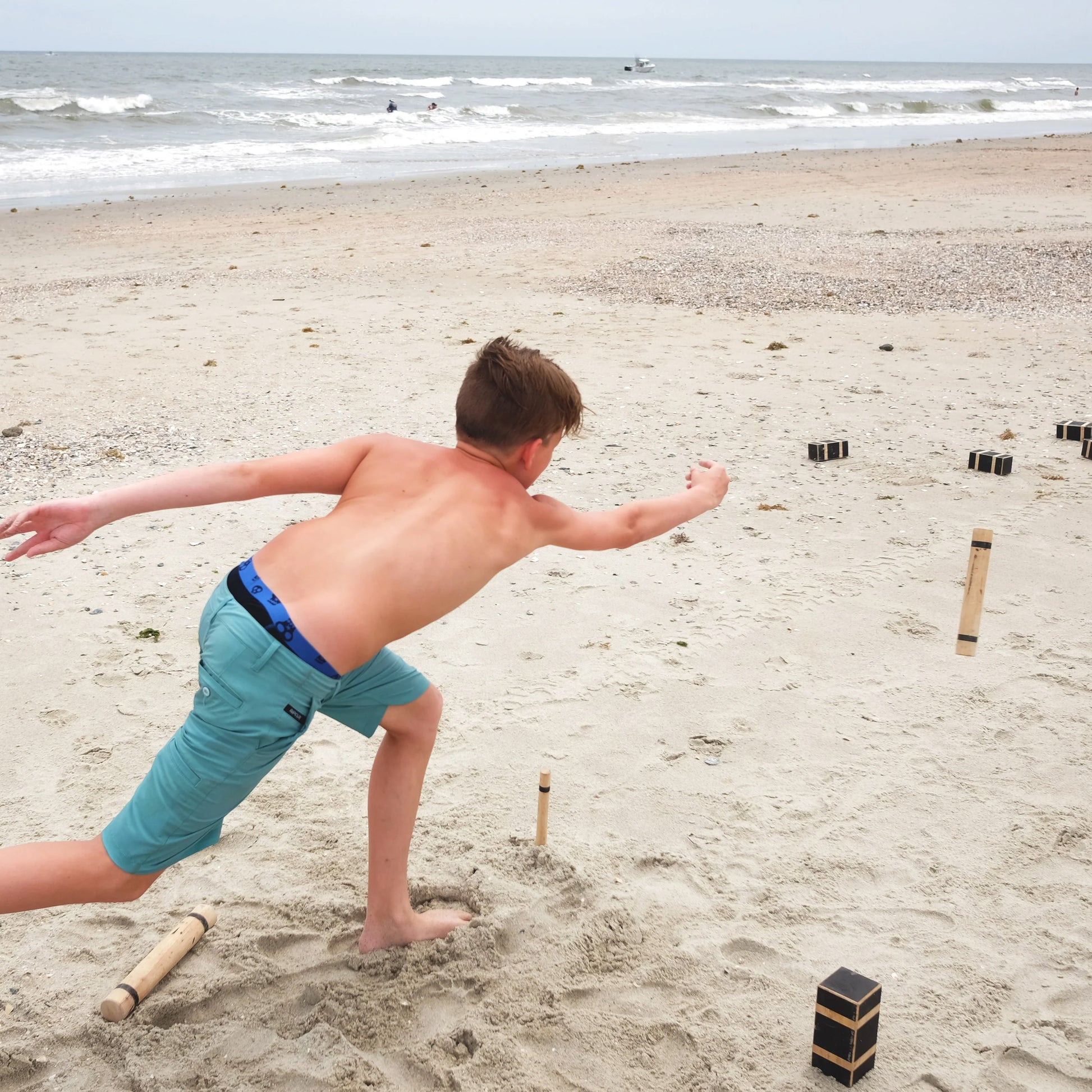 - PLAY ANYWHERE - Kubb is a game that can be played virtually anywhere - in your backyard, the beach, park, and more. This premium hardwood kubb lawn game will work on a variety of surfaces, such as sand, dirt, gravel, grass, dirt, and even snow. Tournament play is held on a 5 meter wide x 8 meter long grass pitch, but recreational play can be held on a variety of different size surfaces to make the game more or less challenging.