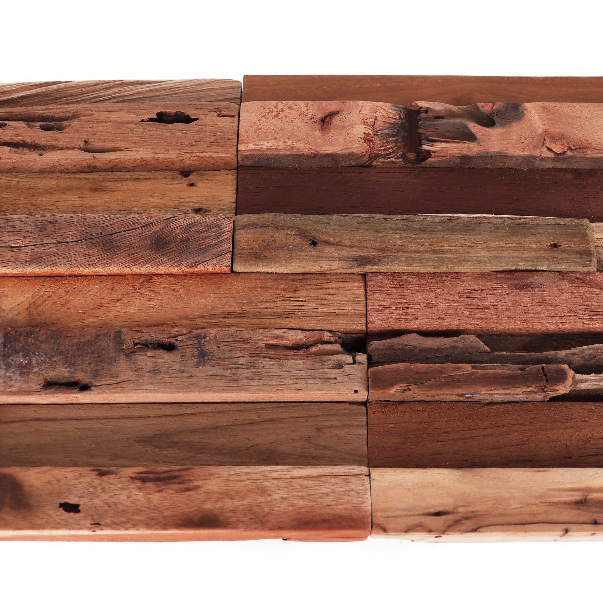 - STUNNING WALL TEXTURES - Ideal for creating an accent wall, boho headboard or backsplash, and a great alternative to 3D wallpaper, beadboard paneling, and wainscoting panels. Teak wood wall panels blend beautifully with a variety of different styles and decors. Each piece of teak is cut to a unique length and width to add depth and unmatched detail to ordinary walls.