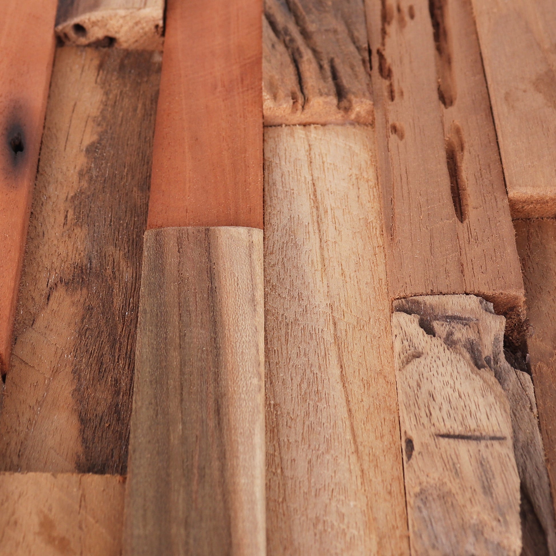 - STUNNING WALL TEXTURES - Ideal for creating an accent wall, boho headboard or backsplash, and a great alternative to 3D wallpaper, beadboard paneling, and wainscoting panels. Teak wood wall panels blend beautifully with a variety of different styles and decors. Each piece of teak is cut to a unique length and width to add depth and unmatched detail to ordinary walls.