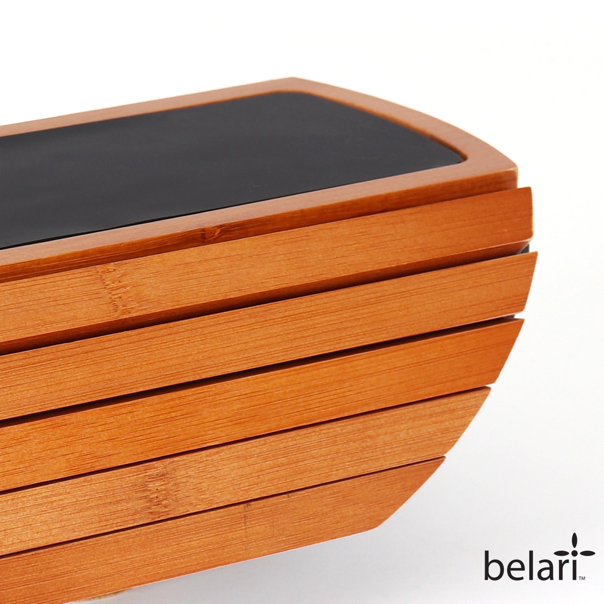 - BELARI BAMBOO SOFA ARM TABLE - The simplistic yet versatile design of the Belari sofa arm table combines modern and minimalist styling to create a functional space for couch arms. Each Belari couch tray can be used in a variety of ways, as a couch cup holder, a place to rest your book and reading glasses, or a resting place for the remote control.Â