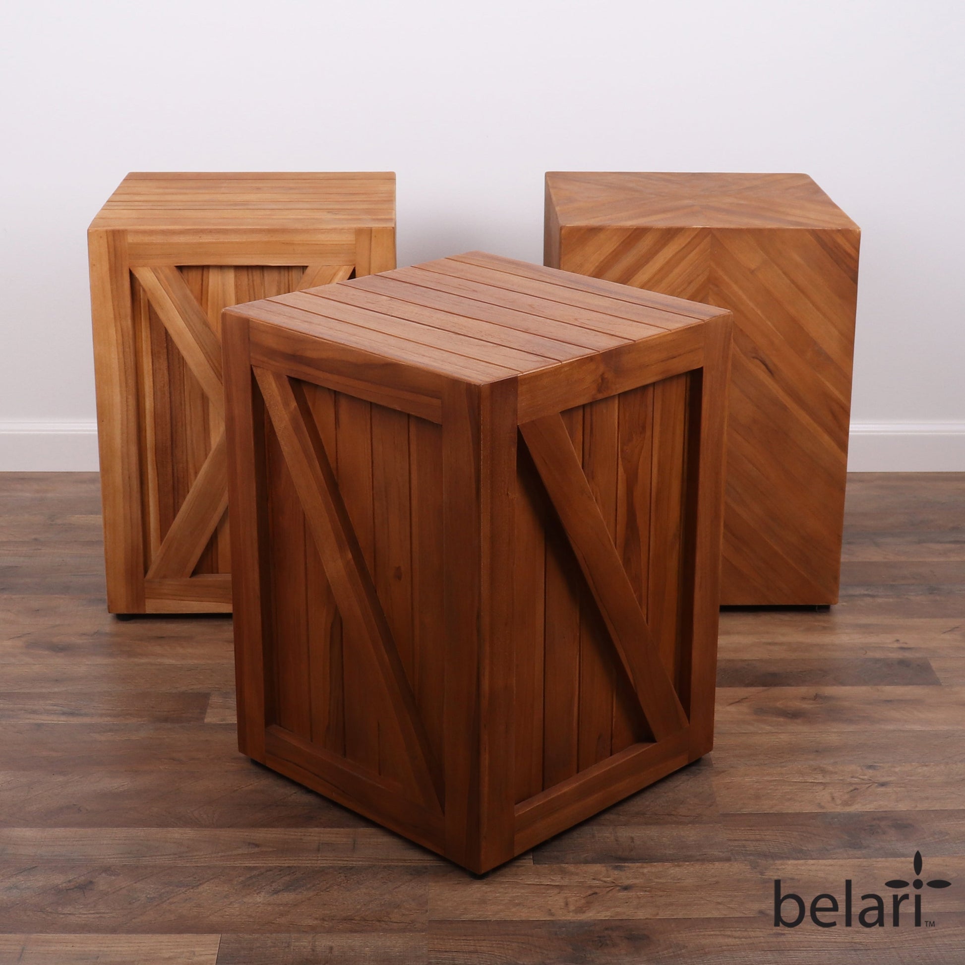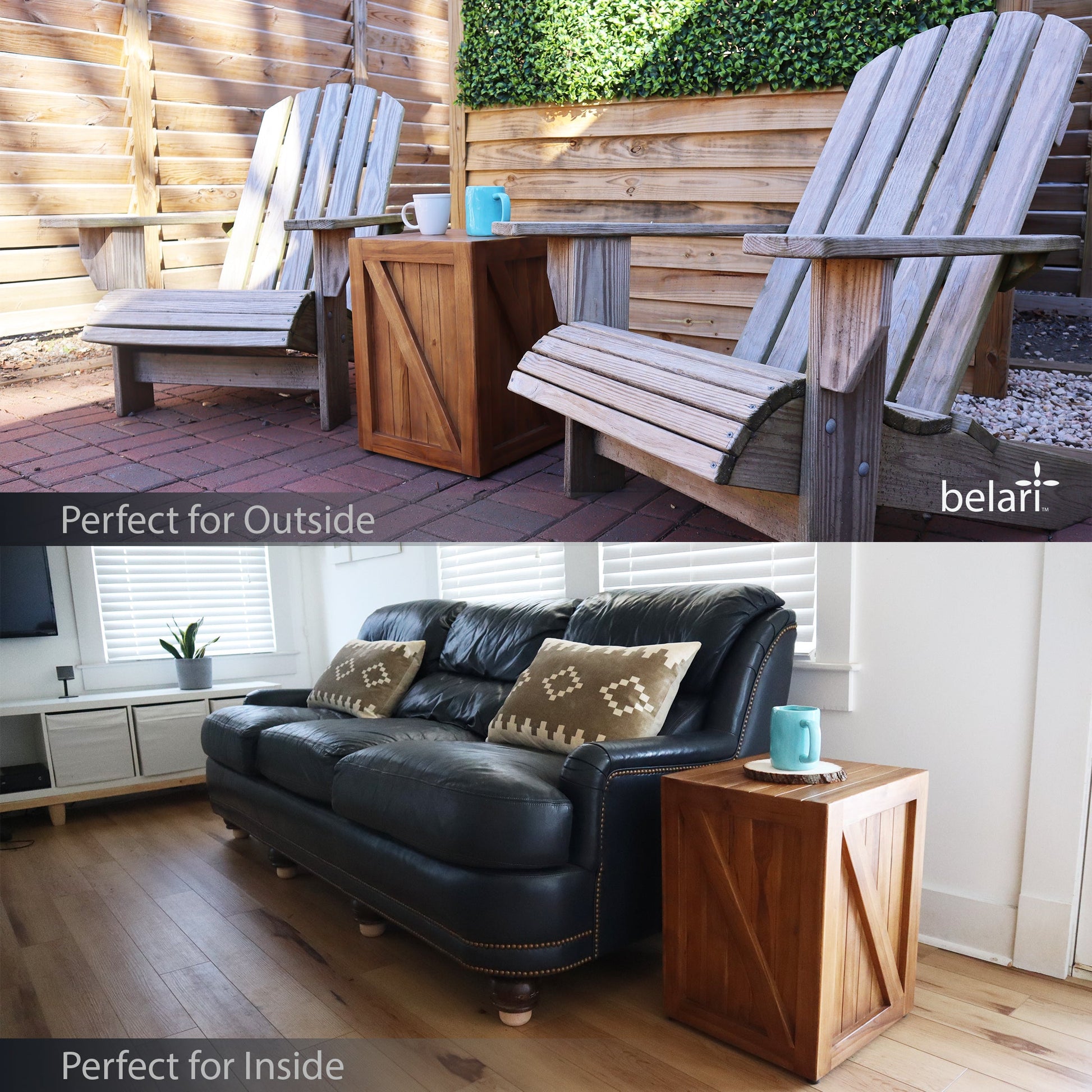 - USE OUTDOORS OR INDOORS - Belari Teak End Tables / Stools look great both inside and outside. Belari Teak Barn Door Stools are built to withstand wet environments and can be used both outdoors and indoors.